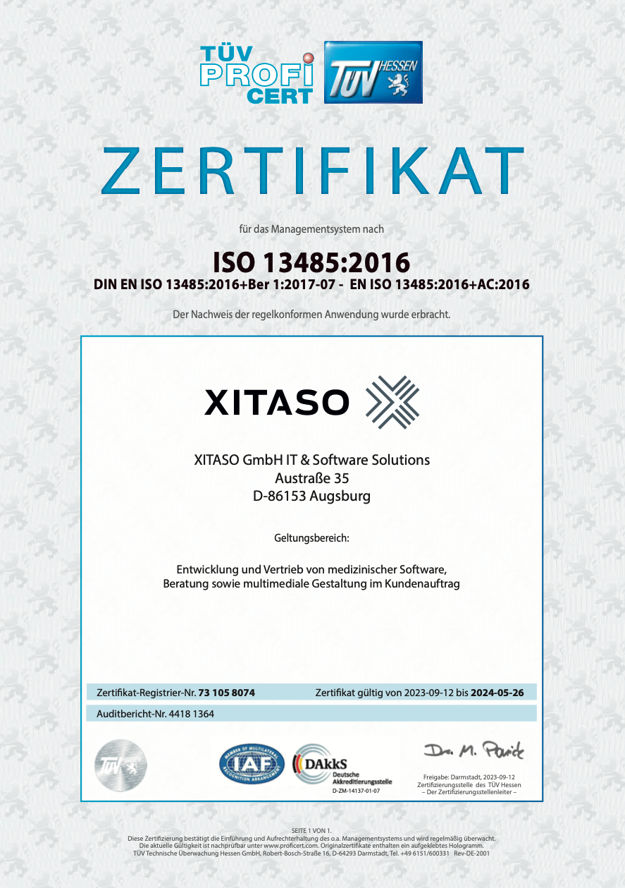 XITASO entwickelt sich weiter – auch in der hochanspruchsvollen Medizintechnik Branche. Zertifizierungen sind gerade dort ein wichtiger Part, um zu unterstreichen, dass wir unsere Kunden exzellent unterstützen können. Häufig sind sie sogar Voraussetzung zur Umsetzung von Projekten unserer Kunden.